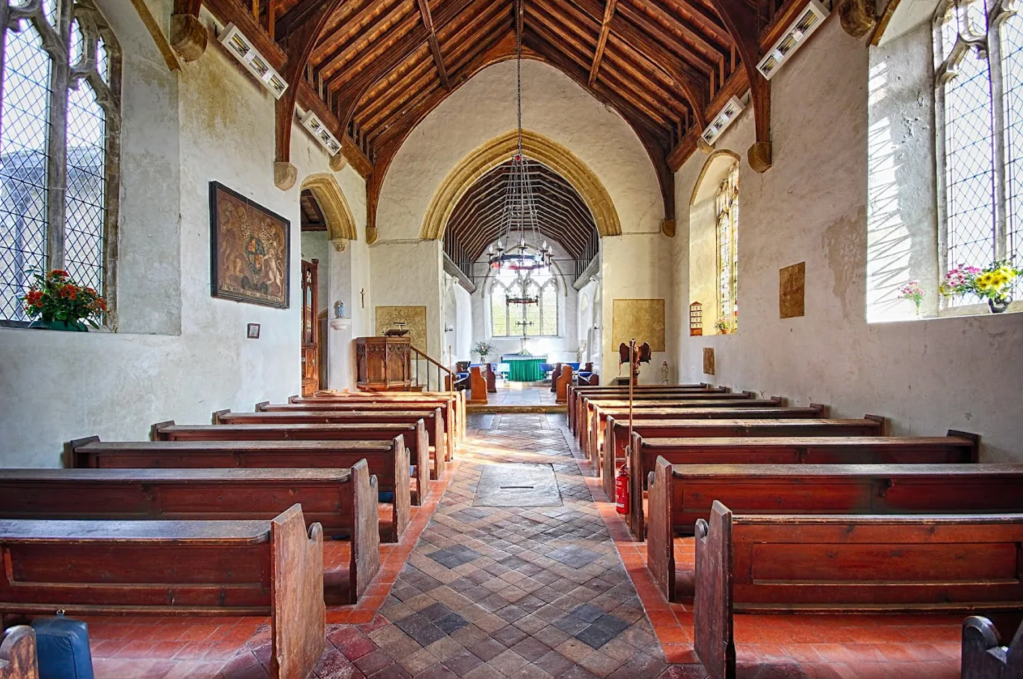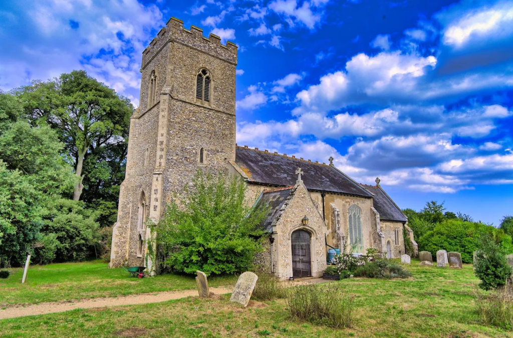 Bale was once known for an enormous oak tree that stood to the west of the parish church. As big as a Bale Oak, was the common expression, but the oak has now gone, removed in 1869 when it became unsafe. It was said to be forty feet in circumference, and must have quite dwarfed the little church beside it. A grove of ilexes was planted to replace it, and there they are today. We are in one of those small, attractive villages huddled in the rolling landscape between Holt and Walsingham, not so very far from Binham either, but this is a quietly agricultural place that probably gets on with its own business without too much interference from the modern world.